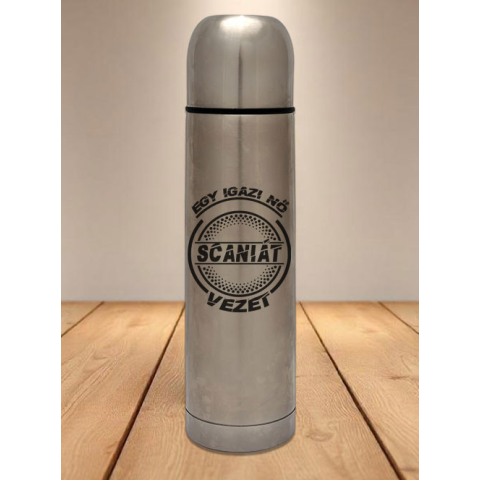 Scaniás termosz, igazi nő Scaniát vezet. Egy igazi nő Scaniát vezet feliratos termosz. Egy Scaniás termoszra minden Scania tulajdonosnak szüksége van, ha ismersz ilyen embert lepd meg őt vele. Termoszaink rozsda mentes acél anyagból készültek, 500ml-es és