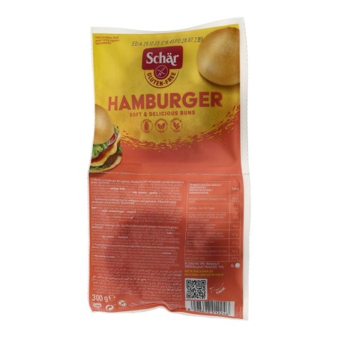 Schär gluténmentes hamburger zsemle 300 g Gluténmentes, laktózmentes, búzamentes, tojásmentes termék. 4 db zsemle/csomag
