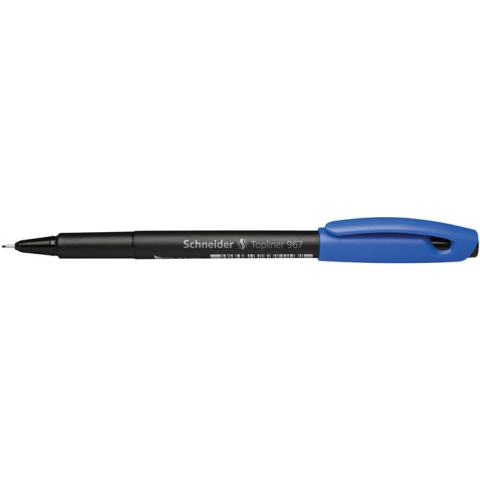 Tűfilc, 0,4 mm, SCHNEIDER Topliner 967, kék - vékony és pontos írás - a rozsdamentes hegy folyamatos írásképet eredményez - vízbázisú tintával töltve - fekete, műanyag tolltest - a tollvég színe megegyezik a tinta színével - vonalvastagság: 0,4 mm - Ca
