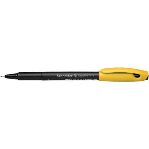 Tűfilc, 0,4 mm, SCHNEIDER Topliner 967, sárga - vékony és pontos írás - a rozsdamentes hegy folyamatos írásképet eredményez - vízbázisú tintával töltve - fekete, műanyag tolltest - a tollvég színe megegyezik a tinta színével - vonalvastagság: 0,4 mm -