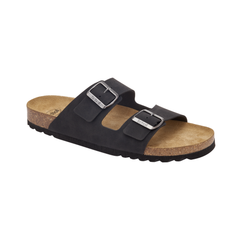 A Scholl Gerry férfi papucs ideális választás azoknak, akik a modern stílust szeretnék ötvözni a praktikus kényelemmel. A papucs két fémcsattal ellátott pánttal készült, amely lehetővé teszi az egyszerű és pontos illeszkedést különböző lábformákhoz – ideális választás széles lábfejűek számára is (G szélesség).