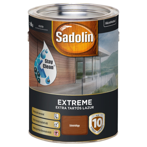 A Sadolin Extreme kültéri vízbázisú, gyorsan száradó, extra tartós selyemfényű lazúr. StayClean Technology: Öntisztuló bevonat. A StayClean technológiával kezelt felületkről a vízcseppek (pl.: eső) hidrofil hatás révén legördülnek. Magukkal sodorják a felületre rakódó környezeti szennyeződéseket (kosz, por), amelyek így nem tudnak megtapadni a bevonaton.