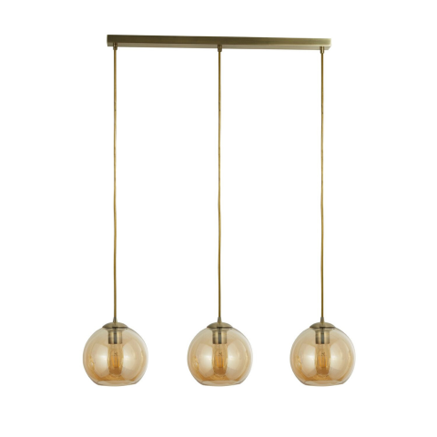 Újítsa meg életterét a 3 lámpás Balls bár függőlámpával, antik sárgaréz kivitelben és borostyánszínű üvegárnyalatokkal. Az üveggömb árnyalatok teszik ezt a terméket megkülönböztető termékké, amelyet a konyhai területen lóghat, akár a konyhasziget vagy az étkezőasztal fölött.