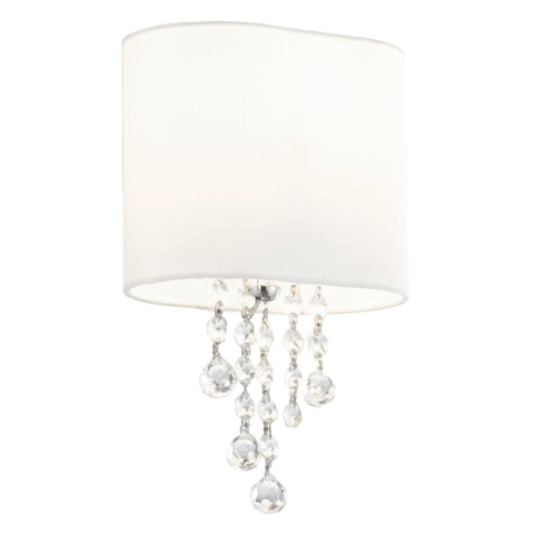 Ez a krómozott Nina fali lámpa kristálygyöngyökkel és fehér szövetárnyékolóval elegáns és kifinomult. A nagyméretű, ovális alakú árnyékoló minőségi fehér szövetből készült, és a közepéről kecsesen lelógó, gömb alakú kristálycseppek illenek hozzá. A lámpa praktikus billenőkapcsolóval rendelkezik, és otthonának bármelyik sarkában lenyűgözően mutat.