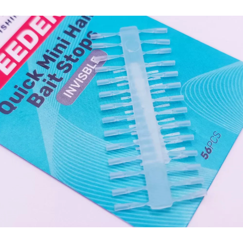 Feeder Quick Mini Hair Bait stops - Invisible - Feeder és Method feeder technikához egyaránt javasoljuk - Víztiszta , láthatatlan - Rendkívül gyors csalirögzítés - Bármilyen csali stabil rögzítése - Használata vékony fűzőtűkkel - Újra használható - 56db/ csomag Rendkívül gyors és hatékony csalizási technikát alkalmazunk a Quick Hair Bait Stops használata közben. Vékony fűzőtűre húzzuk a stoppert és bármilyen apró csali átfűzzük. Legyen az kukorica, minibo