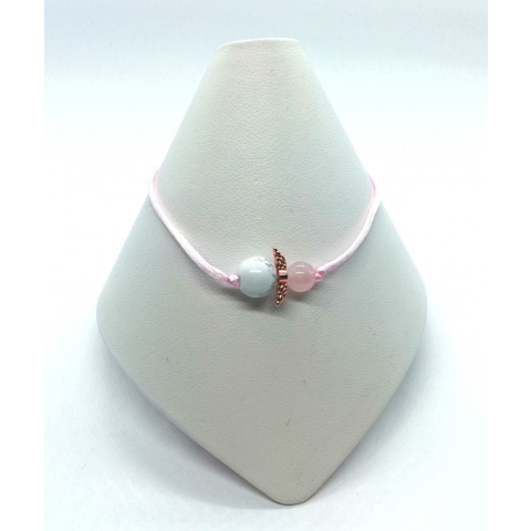 Segítő Angyal minimál karkötő- ÉRZELEM RÓZSAKVARC-HOWLIT Csak ezüst szárnyacskával rendelhető! Segítő Angyal karkötő Kétféle ásványgyöngyből és szaténzsinórból készül. Gyöngyök mérete 8/6mm A karkötő mérete állítható! HOWLIT: A howlit higgadt