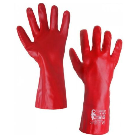 Pamut belső Teljesen PVC-be mártva Gumírozott mandzsetta Szövés sűrűség: 1,8 mm Kesztyű hossza: 35 cm Cat. 2. EN IS 21420, EN 388 (4121X)