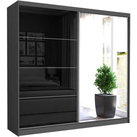 Selvio III. Gardróbszekrény 233x218x60 fekete üveggel - antracit bútor termékleírás