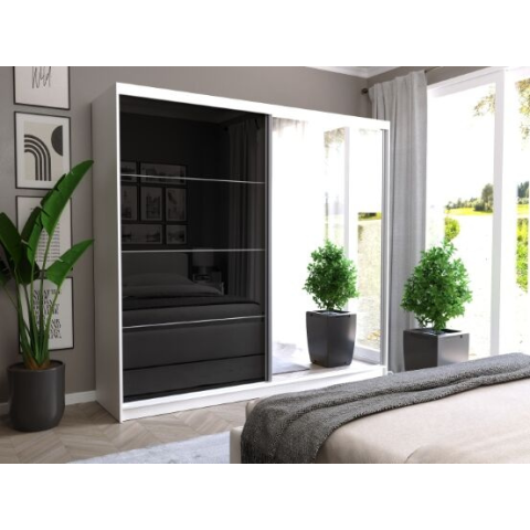 Teljes Selvio III. Gardróbszekrény 233x218x60 fekete üveggel - fehér termékleírás