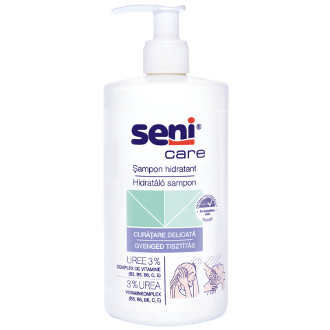 Seni Care sampon Seni Care hidratáló sampon - 500ml A Seni Care hidratáló sampon 3 % Urea-val, hatékonyan táplálja a fejbőrt és visszaállítja a haj egészséges kinézetét. Ajánlott a száraz, érzékeny irritációnak és gyulladásoknak kitett fejbőr gyengéd t