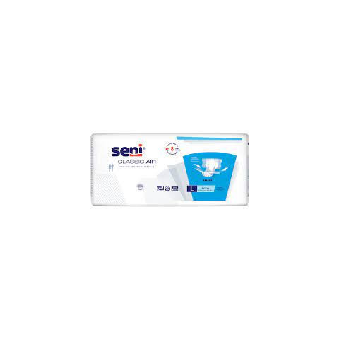 Seni Classic nadrágpelenka 30 db Seni Classic egyszerhasználatos légáteresztő nadrágpelenka középsúlyos és súlyos inkontinencia kezelésére. A dupla nedvszívó mag gyors folyadék elvezetést tesz lehetővé a belső magba, mely szuperabszorbenst ( folyadékme