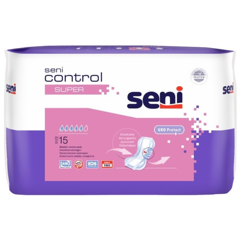 Seni Control Extra légáteresztő urológiai betét hölgyeknek,enyhe és középsúlyos inkontinencia kezeléséhez. - Anatómiailag formált, széles ragasztófelülettel ellátott. - Oldalsó védőgátak megelőzi a szivárgást - Légáteresztő, ennek köszönhetően viselése