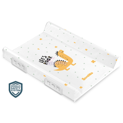 - Sensillo merev pelenkázófeltét. - Profilos szélű, vízhatlan műanyag, habbal kitöltve, merev. - Méretek: 49x70 cm Összetétel: PVC, bélés: poliuretán hab.