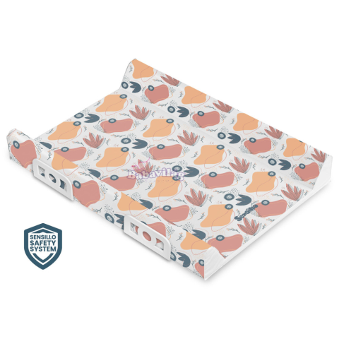 Sensillo pelenkázófeltét. Profilos szélű, vízhatlan műanyag, habbal kitöltve, merev. Méretek: 49x70 cm Összetétel: PVC, bélés: poliuretán hab.