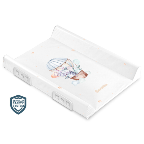 Sensillo pelenkázófeltét. Profilos szélű, vízhatlan műanyag, habbal kitöltve, merev. Méretek: 49x70 cm Összetétel: PVC, bélés: poliuretán hab.