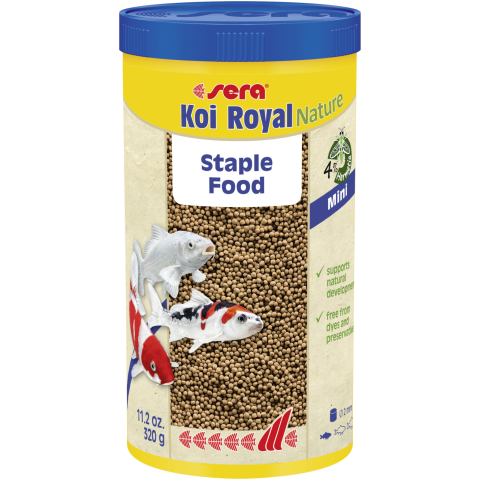 A sera Koi Royal Nature Mini természetes alapanyagokból készült lemezes táplálék, amely mentes minden színezéktől és tartósítószertől. Fő táplálék elősegíti valamennyi fiatal és növendék koi növekedését és jó közérzetét. A jó emészthetőség miatt ideálisan
