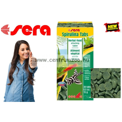 Sera Spirulina Tabs 24 db tablettás díszhaltáp (00920) A Sera Spirulina Tabs egy gyógynövényes összetételű, süllyedő tablettás táp, amely kifejezetten a főként növényevő és mindenevő akváriumi halak, valamint gerinctelenek igényeihez lett kifejlesztve. A