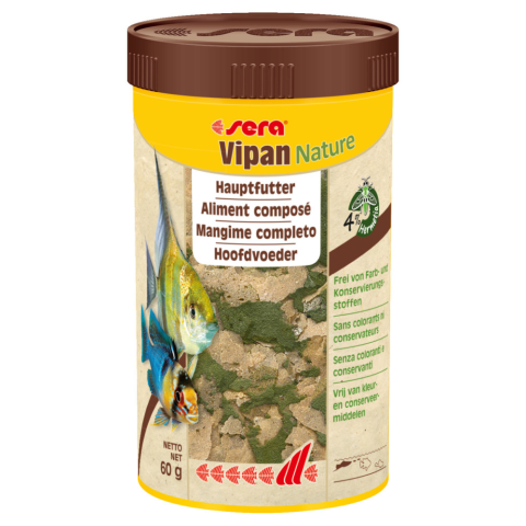 Modern és természetes lemezes díszhaltáp precíz német minőségben. A Sera Vipan Nature mentes minden színezéktől és tartósítószertől. Kiegyensúlyozott és egészséges táplálék valamennyi díszhalnak a társas akváriumokban. A Sera díszhaltáplálékokat külön