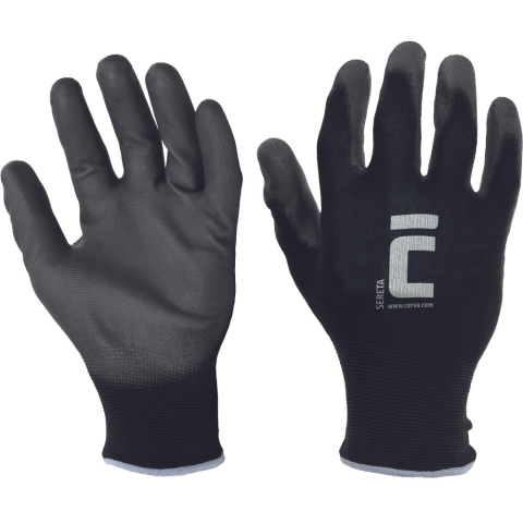 SERETA kesztyű fekete 8 • PU mártott, extra vékony, légáteresztő nylon kesztyű • érintőképernyő barát • 18 GG