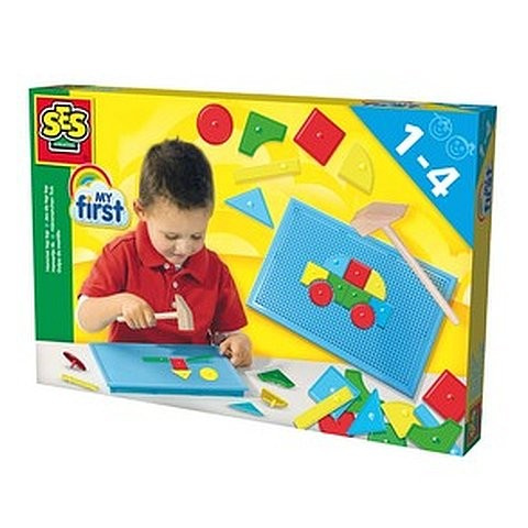 SES első kalapácsos játékom Alkoss képeket színes alakzatokkal és kalapáccsal! A SES első kalapácsos játékom a barkácsolás világába kalauzol el, ahol színes lapokat kell a lyukacsos táblába erősíteni Az alakzatokat kalapáccsal tudod a helyükre illeszt