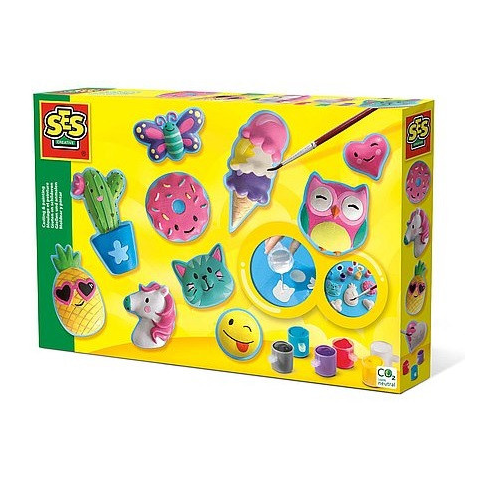 SES vidám figurák gipszkiöntő készlet Készíts mókás figurákat modellgipszből, festékekkel! A SES vidám figurák gipszkiöntő készlettel napszemüveges ananászt, lepkét, különböző mókás mini szobrokat tudsz megalkotni A csomagban lévő modellgipszet vízze