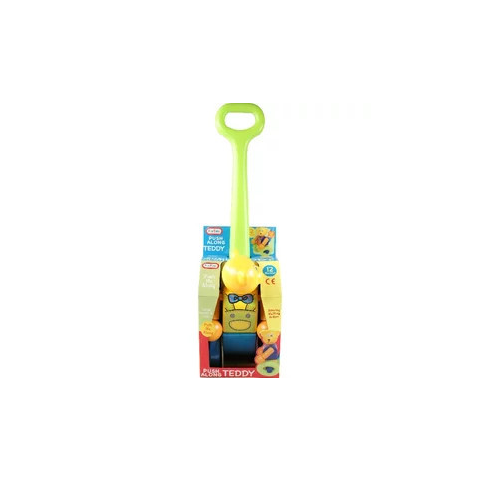 Ez a kedves tologatható mackó ovális kerekei miatt igazán szórakoztatóan mozog miközben a gyerekek húzogatják. A maci mancsai és feje is mozgatható, csörgő-zörgő hangot ad. A játék masszív, erős szerkezetű, fogantyúja jól megmarkolható. Anyaga: műanyag. A játék méretei: kb. 54x15x12 cm.