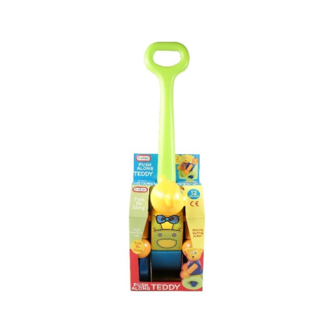 Ez a kedves tologatható mackó ovális kerekei miatt igazán szórakoztatóan mozog miközben a gyerekek húzogatják. A maci mancsai és feje is mozgatható, csörgő-zörgő hangot ad. A játék masszív, erős szerkezetű, fogantyúja jól megmarkolható. Anyaga: műanyag. A játék méretei: kb. 54x15x12 cm.