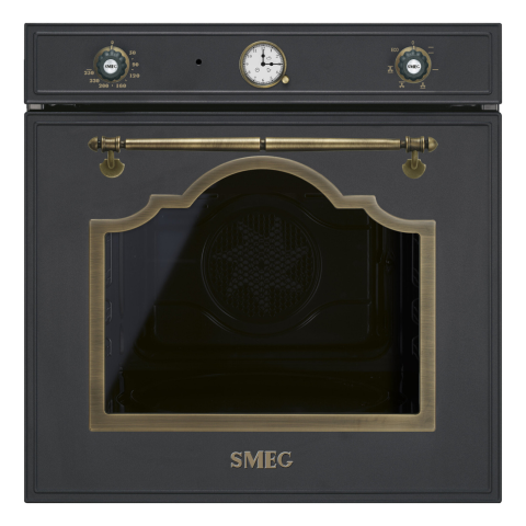SMEG HŐLÉGKEVERÉSES SÜTŐ, Cortina design, 60 cm, analóg, antracit SMEG HŐLÉGKEVERÉSES SÜTŐ, Cortina design, bézs, bronz fogantyú és vezérlőgombok