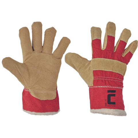 SHAG komb.téli kesztyű sárga piros - 11 • melegen bélelt kesztyű • hasított sertésbőr tenyér, pamutszövet kézfej és mandzsetta
