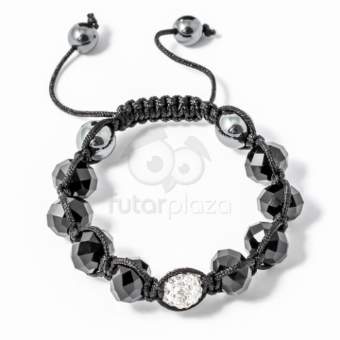 1 kép Shamballa karkötő 1 kristály + 8 üveggyöngy fekete jwr-1556