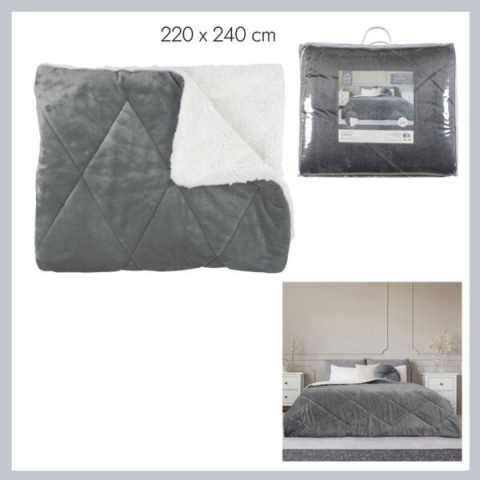 Sherpa ágytakaró flanel szürke 220x240cm TX91571