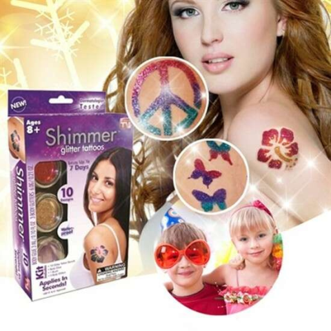 Shimmer Glitter - csillámtetováló készlet csillámporokkal, sablonokkal, ecsettel