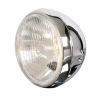 SHIN YO 7 hüvelykes fényszóró British-Style, H4 betéttel és domborított üveggelPurisztikus formájú fényszóró nagyon csillogó krómozott fém házzal és bordázott üveggel oldalsó felszereléshez. Az egyszerű design ideális választás klasszikus motorokhoz, road