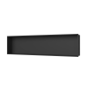 Fürdőszoba fülke kiváló minőségű rozsdamentes acélból, fekete matt színben, mérete 121x28 cm, mélysége 10 cm, a fülke körül kerettel.