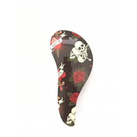Bontókefe fekete színben, love mintával. Ez a bájos, szokatlan alakú hajkefe praktikus kiegészítő és elengedhetetlen kellék az otthoni vagy tornatermi hajápolási esetekre
