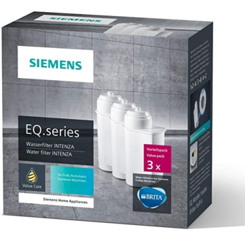 Siemens vízszűrő EQ series (3db) 17005980, 17004341 A Brita Intenza Espressoapp vízszűrő egy 3 darabos csomag, amely kifejezetten Bosch, Siemens és Neff kávéfőzőkhöz készült. Segít meghosszabbítani a kávéfőző élettartamát a vízkőlerakódások elleni védel