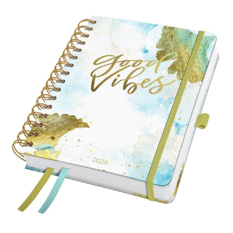 1 kép Sigel Jolie határidőnapló, 2026, spirálos, 16,8x21,5 cm, heti, Good Vibes