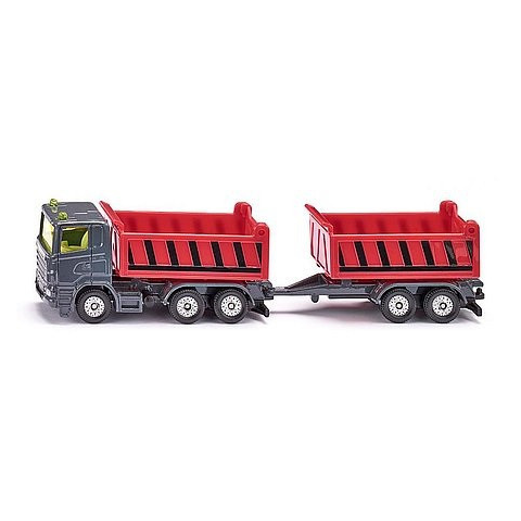 SIKU Billenős teherautó pótkocsival 1:87 Szállítsd el a sittet a billenős teherautó pótkocsival! A SIKU Billenős teherautó pótkocsival egy szürke színű piros billenős teherautó pótkocsival A SIKU Billenős teherautó pótkocsival modell az építkezésen ha