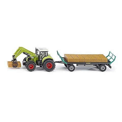 SIKU Claas Axion 850 homlokrakodós traktor bálaszállító utánfutóval 1:50 Szállíts szénabálákat a traktor bálaszállító utánfutóval! A SIKU Claas Axion 850 homlokrakodós traktor bálaszállító utánfutóval egy zöld színű Claas traktor bálaszállító utánfutó