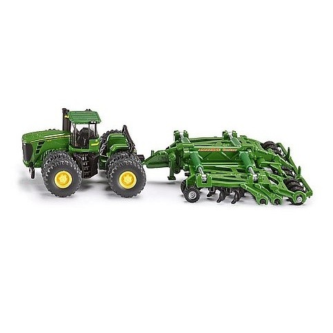 SIKU John Deere 9630 traktor Amazone Centaur utánfutóval 1:87 Lazítsd fel a talajt kultivátorral! A SIKU John Deere 9630 traktor Amazone Centaur utánfutóval egy sötétzöld, dupla kerekű John Deere 9630 traktor Amazone Centaur rotációs kapa utánfutóval