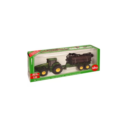 Pakold fel az utánfutóra a farönköket, és szállítsd el őket! A Siku: John Deere rönkszállító traktor 1:50 - 1954 készlet egy zöld színű, John Deere 8430 traktorból, valamint egy darus utánfutóból áll, amivel fát lehet szállítani.