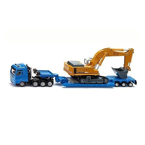 SIKU MAN tréler Liebherr munkagéppel 1:87 Szállíts munkagépet az építkezésre! A SIKU MAN tréler Liebherr munkagéppel egy kék MAN vontató teherautó alacsony platós trélerrel és egy Liebherr munkagéppel A SIKU MAN tréler Liebherr munkagéppel vontató teh