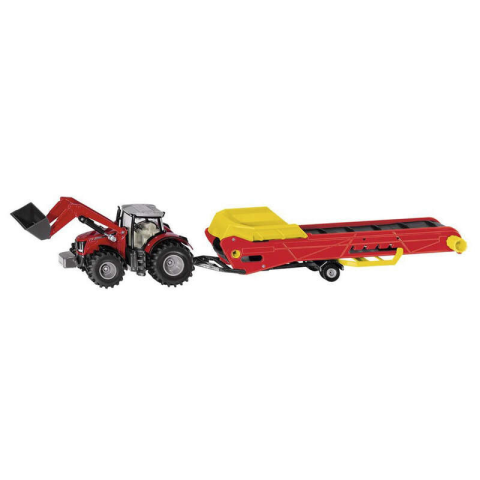 Szállítsd a terményt és segíts a mezőgazdasági munkában ezzel a részletgazdag SIKU Massey Ferguson traktorral és a hozzá tartozó futószalaggal. A modell 1:50 méretarányban készült, és valósághűen mutatja be, hogyan zajlik a termények mozgatása és szortírozása a gazdaságban.