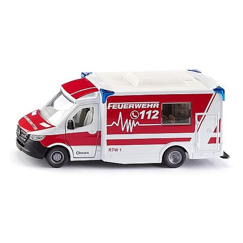SIKU Mercedes-Benz Sprinter Miesen C típusú mentőautó 1:50 Száguldj a baleset helyszínére a mentőautóval! A SIKU Mercedes-Benz Sprinter Miesen C típusú mentőautó modell egy fehér - piros színű, felirattal ellátott sürgősségi mentő furgon A SIKU Merced