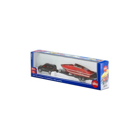 Szállj vízre ezzel a szuper motorcsónakkal, ám előbb szállítsd a tengerpartra a SIKU Toyota Landcruiser segítségével, amit a dobozban találsz! Ha megérkeztél a vízhez, told be az utánfutót, vedd le a motorcsónakot és indulhat a száguldás.