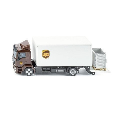 SIKU UPS MAN teherautó zárt felépítménnyel és emelőhátfallal 1:50 Szállíts ládákat a MAN emelőhátfalas UPS teherautóval! A SIKU UPS MAN teherautó zárt felépítménnyel és emelőhátfallal egy barna fülkés MAN teherautó modell zárt felépítménnyel, emelőhát