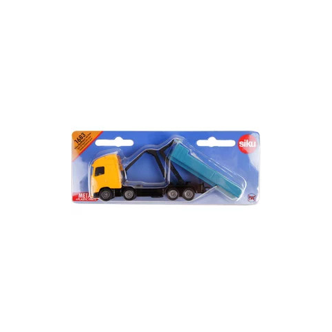 Szállíts rakományt az emelhető platós teherautóval! Az 1:87 méretarányú Siku: Volvo dömper daruval - 1683 egy fémből és műanyagból készült teherautó, ami nehéz tömegeket is képes könnyedén magával vinni. A teherautó platóját meg tudod dönteni, a daruval a rakományt fel tudod tölteni a szállítási felületre. A játék együtt használható más 1:87 méretaránnyal készült SIKU játékokkal, készletekkel is. A Siku: Volvo dömper daruval 1:87 - 1683 mérete: 12