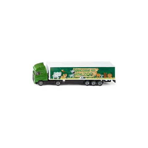 Szállíts tápot az állatkertbe a Volvo kamionnal! Az 1:87 méretarányú Siku: Volvo nyerges kamion egy zöld színű, fémből és műanyagból készült nyerges vontató, aminek az utánfutója egy állatkertet reklámoz. Az utánfutó lecsatlakoztatható a vontatóautóról, és le is tudod támasztani, ha ki kell rakodni belőle. A játék együtt használható más SIKU 1:87 méretaránnyal készült készletekkel, járművekkel is. A Siku: Volvo nyerges kamion 1_87 - 1627 mérete: 20 cm