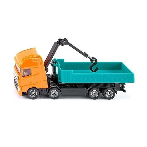 SIKU Volvo teherautó görgős konténerrel daruval 1:87 Szállíts rakományt a görgős konténeres teherautóval! A SIKU Volvo teherautó görgős konténerrel, daruval, egy narancssárga fülkés önrakodó darus, görgős konténer szállító teherautó A SIKU Volvo teher
