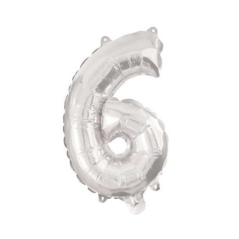 Silver, Ezüst 6-os szám fólia lufi 95 cm